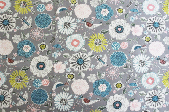 Jcオックス 花々と鳥達 ライトグレー