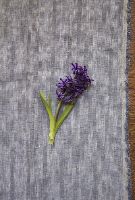 美しい、カラーインディゴの、深いニュアンスのある上品なリネンヘリンボーンを是非ご利用ください。